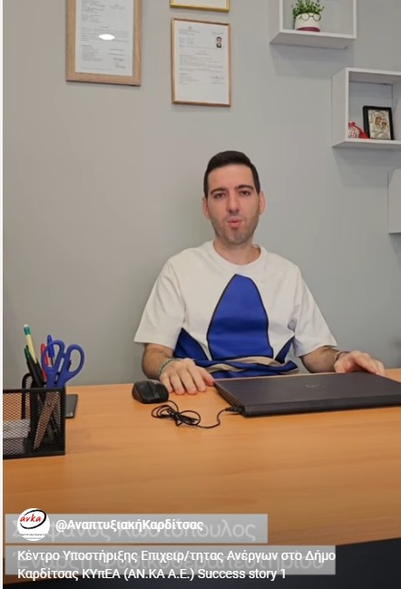 Τι είπε για μας, άλλος ένας ωφελούμενος του ΚΥπΕΑ που ξεκίνησε επαγγελματική δραστηριότητα, αφού έλαβε υπηρεσίες συμβουλευτικής, δικτύωσης, εκπαίδευσης και στήριξης της επιχειρηματικής εκκίνησης από το Κέντρο Υποστήριξης Επιχειρηματικότητας Ανέργων και μειονεκτούντων πολιτών στο Δήμο Καρδίτσας.