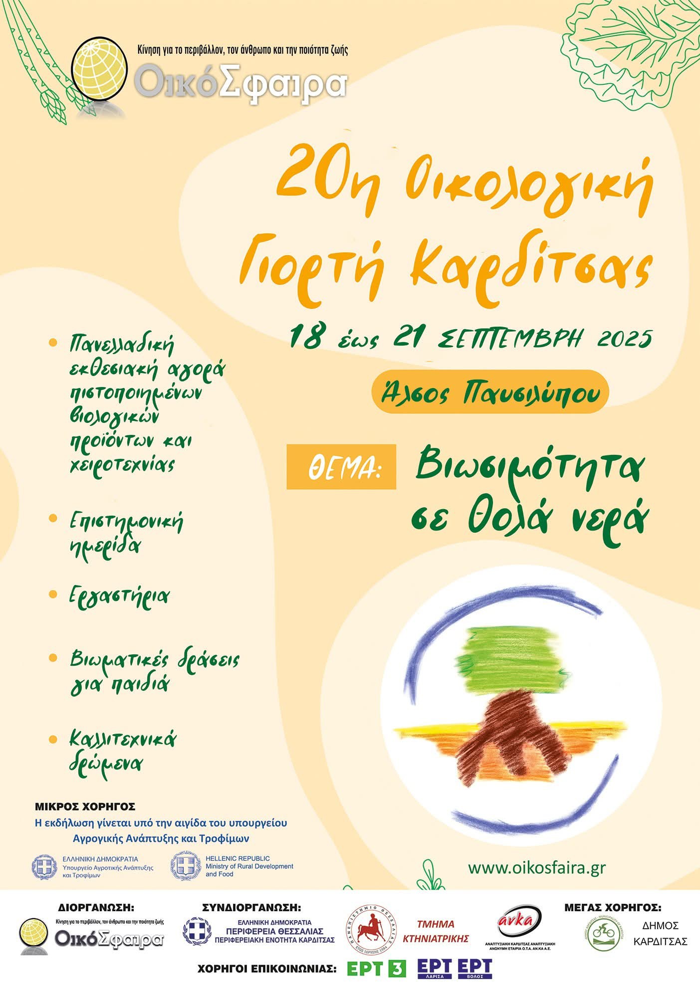 20η Οικολογική Γιορτή Καρδίτσας 18-21 Σεπτέμβρη 2025 - Η ΑΝ.ΚΑ συνδιοργανωτής