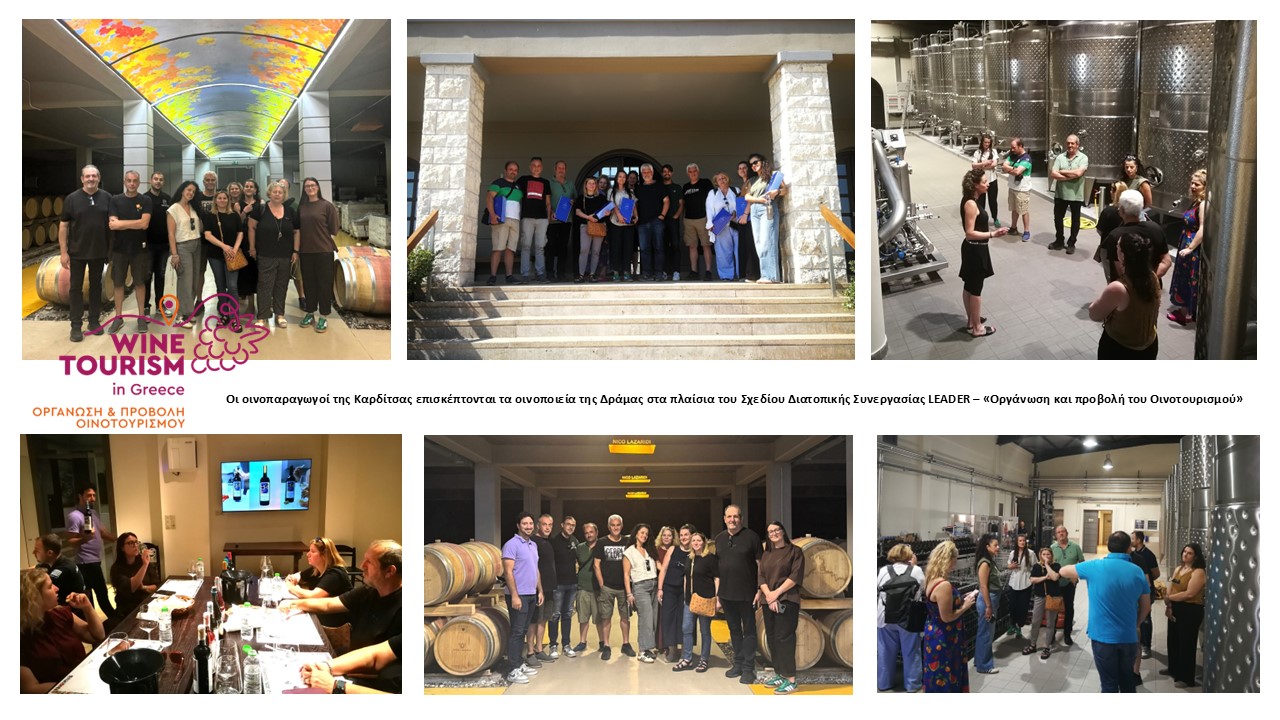Για τρεις γεμάτες μέρες, οι οινοπαραγωγοί της Καρδίτσας Αφροδίτη Τούσια & Ανδρέας Κοντοζήσης (Kontozisis Wines), Γεώργιος Καραμήτρος & Ευαγγελία Σπανού (Winery Monsieur Nicolas), Γεώργιος Λιάππας  (Οινοποιείο-Αποσταγματοποιείο Λιάππα), Δήμητρα Καραβανά, (Karavana's Wines) και Θάνος Καραθάνος (Artisan Distillery “PÚRO Karathanos”) συνοδευόμενοι από τον Συντονιστή της ΟΤΔ LEADER της ΑΝ.ΚΑ Α.Ε Παναγιώτη Ντανοβασίλη, την Οινολόγο – Δημοσιογράφο Χρυσούλα Κυριακοπούλου και τη Σύμβουλο Επικοινωνίας Μάρα Σαμαρά, περιηγήθηκαν σε μερικά από τα πιο σημαντικά και καλαίσθητα οινοποιεία της χώρας, με σημείο αναφοράς τις οινοτουριστικές πρακτικές τους.