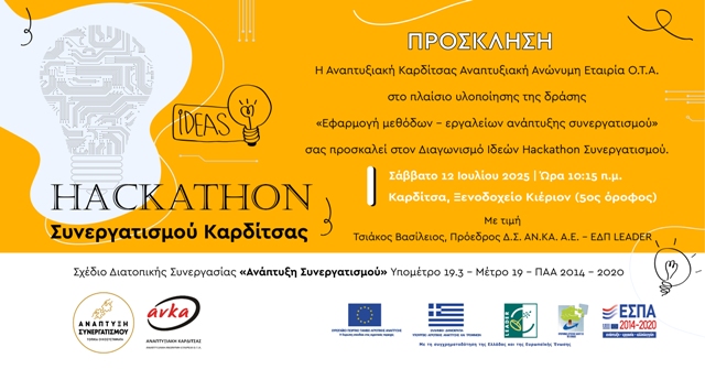 🔸Ο νικητής θα συμμετάσχει στο Διατοπικό Hackathon Συνεργατισμού μεταξύ 12 περιοχών της Ελλάδος που θα οργανωθεί το Σεπτέμβριο στην Καρδίτσα.