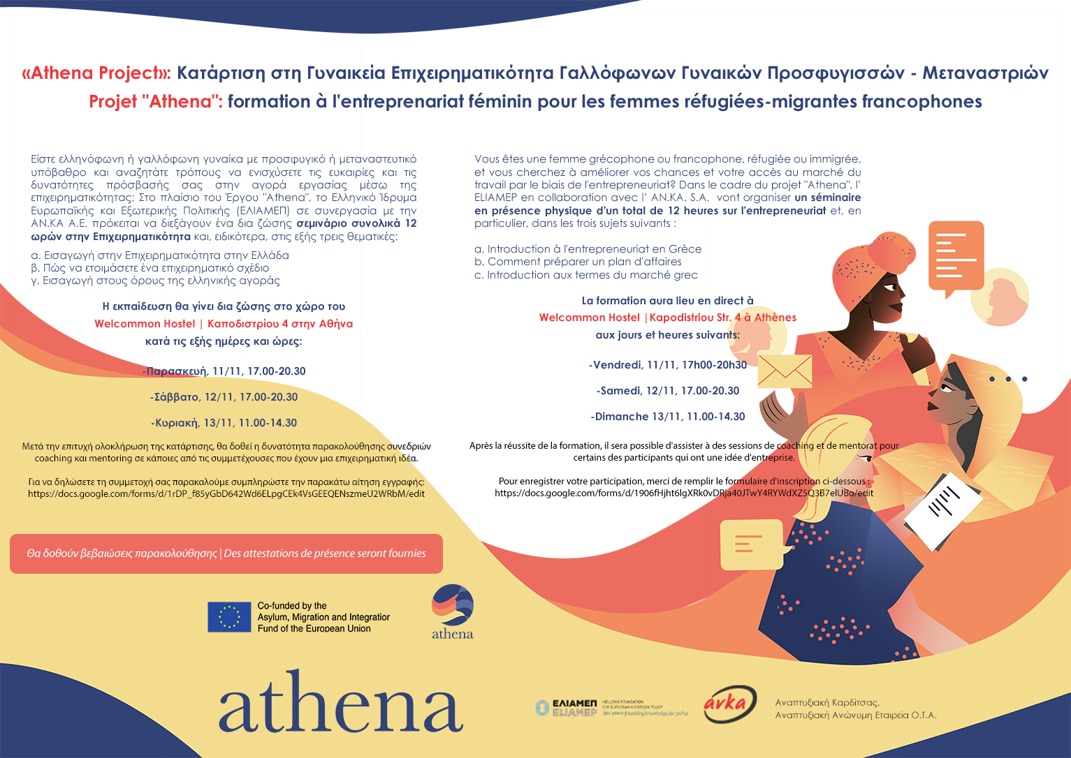 «Athena Project»: Δια ζώσης κατάρτιση στη Γυναικεία Επιχειρηματικότητα Γαλλόφωνων Γυναικών Προσφυγισσών - Μεταναστριών