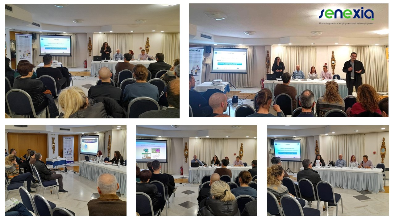 Από την υπεύθυνη έργου κα Τριάντου παρουσιάστηκε το πρόγραμμα SENEXIA που προσέγγισε το ζήτημα της εκπαίδευσης ενηλίκων επιχειρηματιών και αυτοαπασχολούμενων με χαμηλές ψηφιακές δεξιότητες με  στόχο την αναβάθμιση αυτών και την ενσωμάτωσή τους στις ανάγκες της ραγδαία εξελισσόμενης ψηφιακής εποχής.