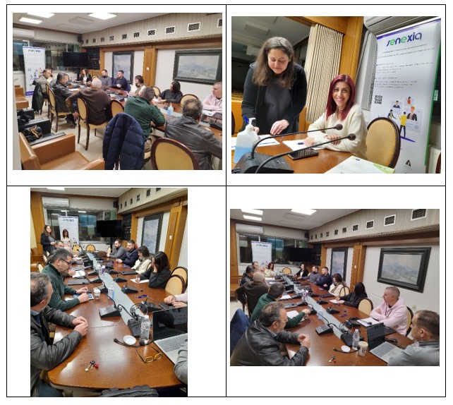 3rd Pilot Meeting SENEXIA, 23/01/2024 Chamber of Commerce of Karditsa Meeting Room with professionals from the agricultural sector, such as trainers and agricultural consultants to which we presented the SENEXIA MOOC in its final form and asked for their feedback. The comments received were positive and all participants agreed on the necessity of tools like that, especially in the agricultural sector, as most entrepreneurs are self-employed and many lack or have limited digital skills.